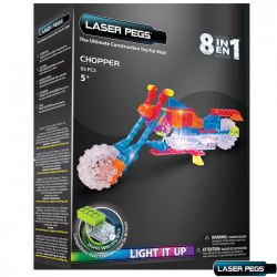 Build three light up vehicles with the Zippy Do® from Laser Pegs®. The Zippy Do® Helicopter, Zippy Do® Plane and Zippy Do® Car! The Zippy Do® comes with a core that can light up or flash, 22 colorful interchangeable pieces and instructions to build a Helicopter, Jet and Car. The packaging even transforms into a ramp for launching your Zippy Do® into the air! These parts are compatible with other major brand construction blocks, so you can keep adding to your models. Just kick your imagination into gear and swap pieces in and out to build your own unique driving and flying machines. Ages 3 and Up. Batteries Included.