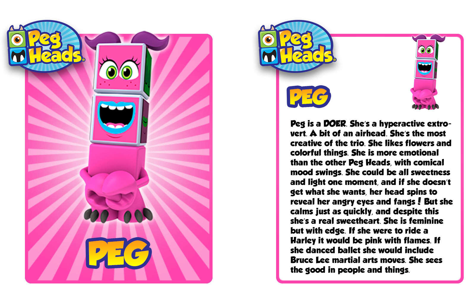 The Pegs Heads are silly, lovable, and downright adorable. Their messages are simple; their lessons are unforgettable. As the Peg Heads learn to grow your children will love to grow with them. Problems and solutions will be identifiable with things happening in the busy lives of today’s busy children.