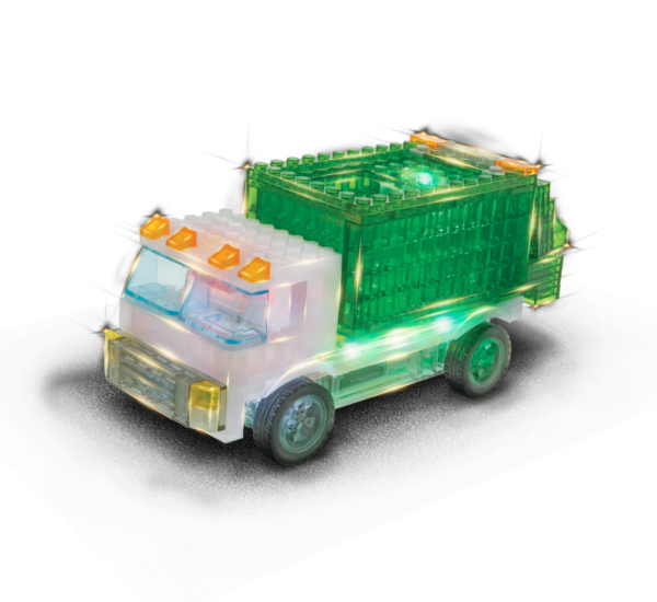 It’s time to clean up the streets with the 12-in-1 Garbage Truck kit from Laser Pegs® Builder! Roll up your sleeves and get behind the wheel of the Rear Loader, Recycling Truck, Dumpster Hauler, and many more. Take your play to the next level by lighting up your creations as you spend the night tidying up using the realistic dumping action! The possibilities are endless!