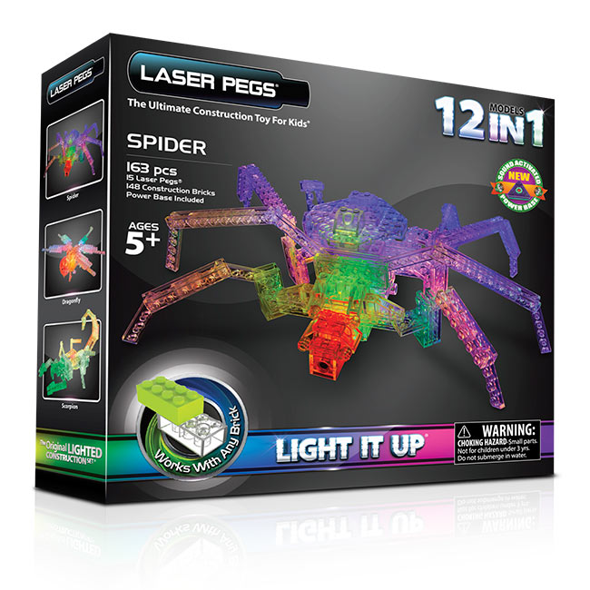 The brightest creepy crawlers you’ve ever seen exist in this incredible 12 in 1 Spider kit from Laser Pegs! Build your favorite insects like the Grasshopper, Scorpion, Praying Mantis, Ant, and many more. When your through building light up your creations to make the fun last all night long!